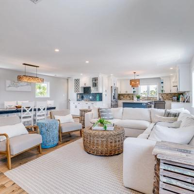 Bean Point Retreat is a luxurious beachfront vacation rental that offers stunning views of the Gulf of Mexico and direct beach access. This single-family home boasts 4 spacious bedrooms and 3 bathrooms, providing a generous amount of space for relaxation and comfort. The open floor plan seamlessly merges indoor and outdoor living, with a well-equipped kitchen, a beachfront patio, and a den on the main floor. Upstairs, you'll find three more bedrooms, including two with Gulf views and a second-level deck for enjoying the scenery.
