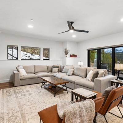 This luxurious ski-in-ski-out Big Sky Powder Ridge cabin offers a stunning mountain view and a tranquil forest setting, perfect for a relaxing getaway. With 6 bedrooms and 4 bathrooms, this spacious 3,550 sq. foot cabin is ideal for multiple families or a group of friends looking to enjoy the great outdoors. The interior boasts high-end amenities, chic furnishings, and modern conveniences, including Smart TVs and DirecTV service, ensuring a comfortable stay. Each piece of artwork in the cabin has been carefully selected to enhance the warm and inviting cabin ambiance.