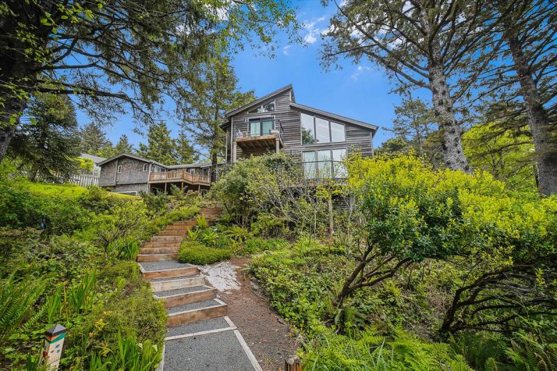 Outside of town, stay in an architecturally stunning oceanfront home nestled in the trees, with walls of windows and multi-tiered decks showcasing amazing sunsets over the water and abundant wildlife, including elk, bald eagles, and whales. Journey down a private path to a secluded beach for a true escape from it all.