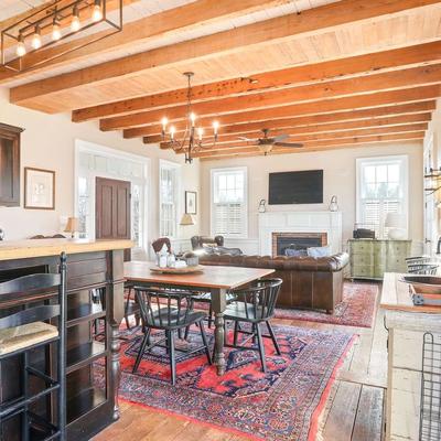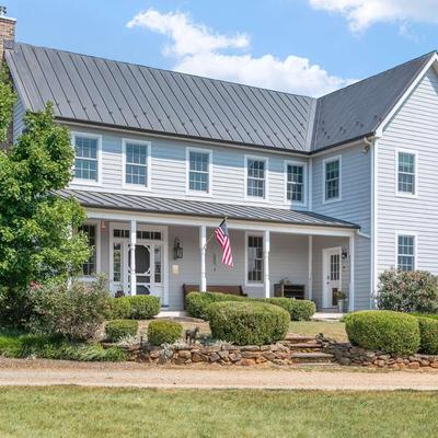The Farmhouse at Waterperry Farm provides a charming and comfortable retreat for families or groups of friends, with five bedrooms, a fully equipped kitchen, and elegant decor blending Country French style with chic touches. Guests can relax on the spacious front porch overlooking the mountains or gather around the gas fire pit for a cozy evening. The property offers access to a swimming pool, ponds for fishing, a fire pit, and a pool house with an outdoor kitchen. For added convenience, Stay Charlottesville can assist in arranging special experiences like private chef services, winery tours, or yoga sessions on-site. Whether you're visiting for a wedding, reunion, or simply to explore the area's attractions and wineries, Waterperry Farm promises an unforgettable and indulgent stay filled with relaxation and natural beauty.