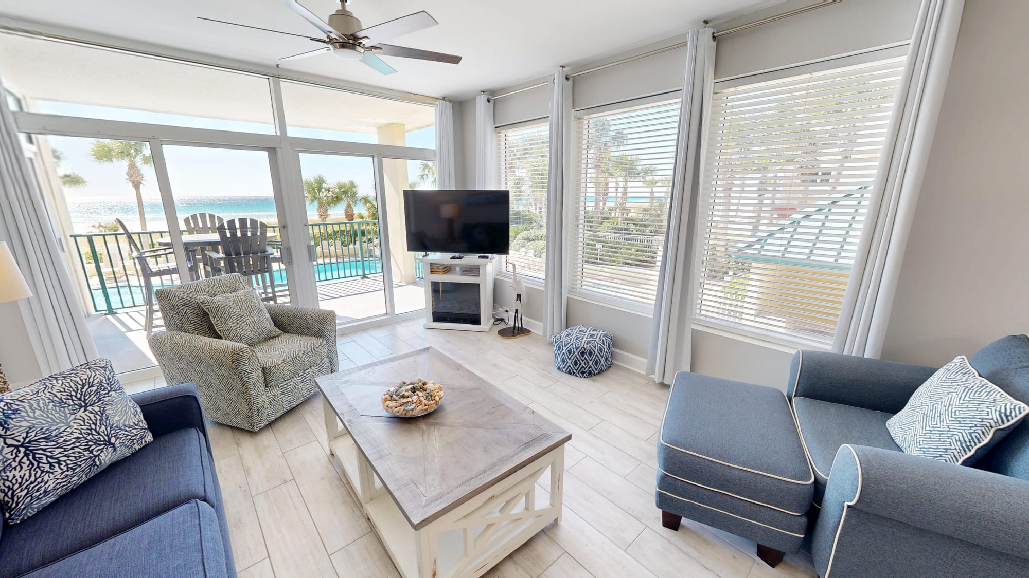 The fully equipped kitchen features modern appliances, perfect for preparing meals to enjoy on the balcony while taking in the stunning ocean views. Each bedroom is furnished with comfortable bedding and new furniture, ensuring a restful night's sleep after a day of beach activities. Enjoy premium amenities such as Smart TVs, free Wi-Fi, and a washer and dryer for added convenience during your stay.