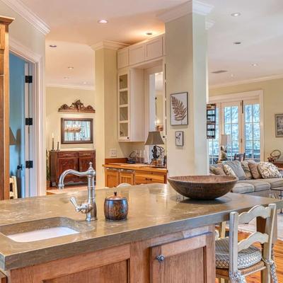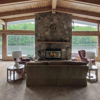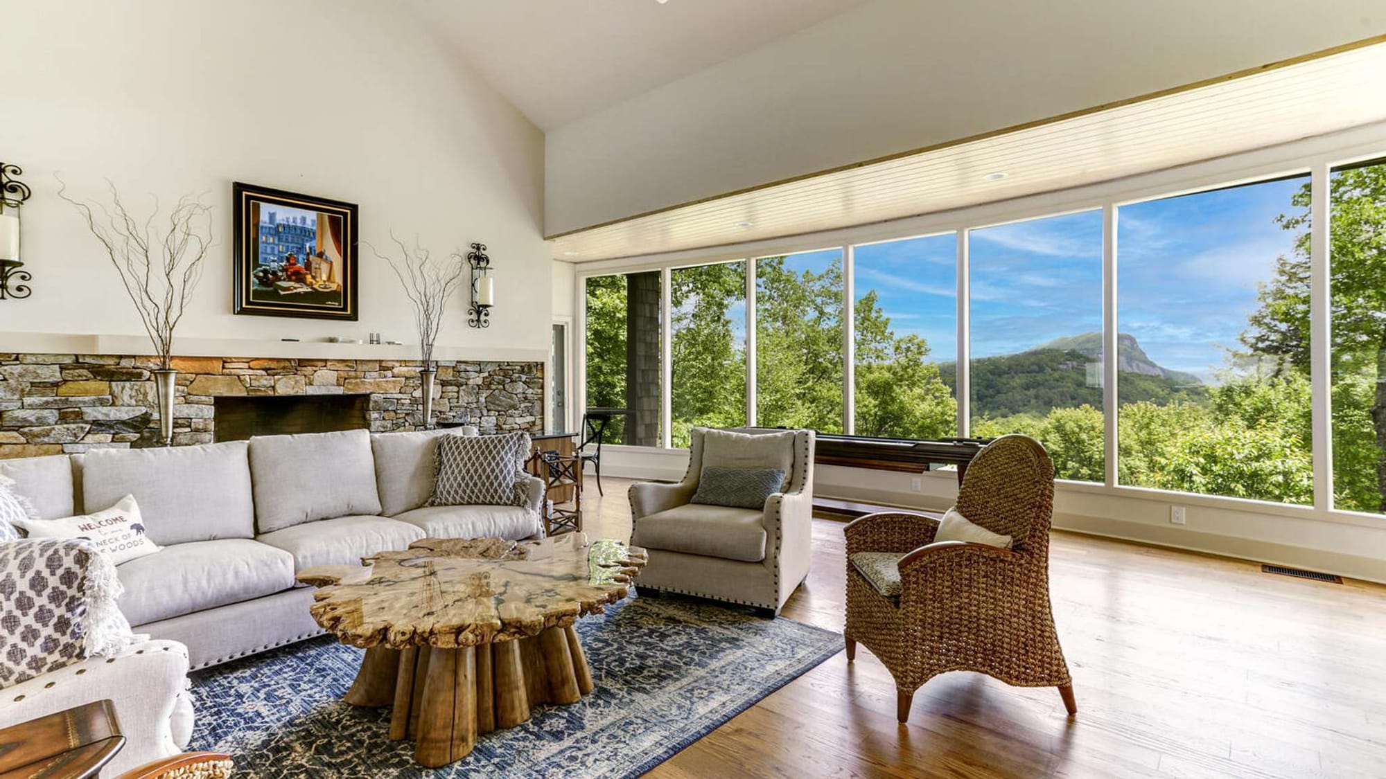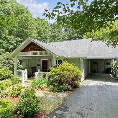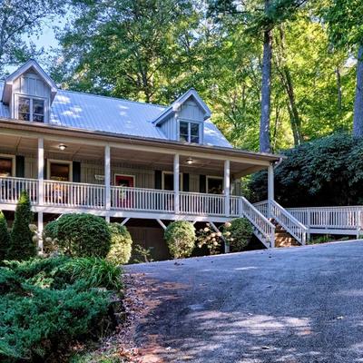 Escape to a serene mountain retreat at this stunning Highlands vacation rental. Located in the exclusive Highland Falls Country Club, this home offers breathtaking views of Whiteside Mountain, a waterfall, and a meandering stream. The main level boasts a luxurious kitchen with top-of-the-line Wolf appliances and a spacious dining area that opens to a stone patio, perfect for al fresco dining. The living area is designed to showcase the panoramic views and features a cozy gas fireplace, ideal for relaxing after a day of outdoor adventures.