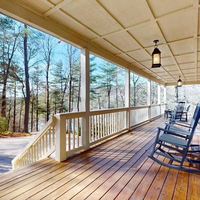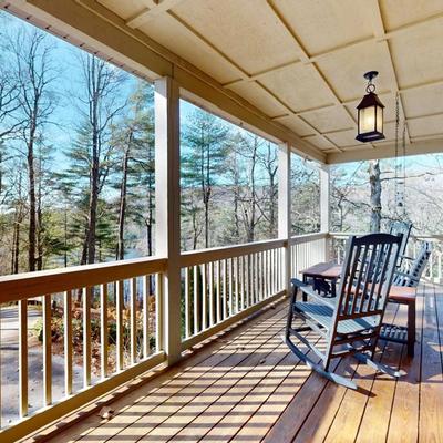 Upstairs, two spacious bedrooms with ensuites provide privacy and comfort, each offering stunning mountain views. The lower level bedroom also features its own deck, providing a peaceful retreat for guests to unwind. Outdoor spaces abound, with a gas grill on the patio for cookouts and a screened porch offering mountain views and a gentle breeze. The primary suite boasts a private screened porch, while the guest bedroom downstairs enjoys its own covered porch, both providing tranquil spots to soak in the natural beauty surrounding the property. With top-notch amenities and unbeatable views, this mountain getaway is the perfect destination for a rejuvenating vacation with loved ones.