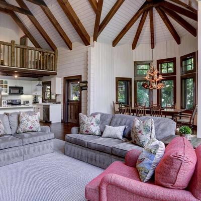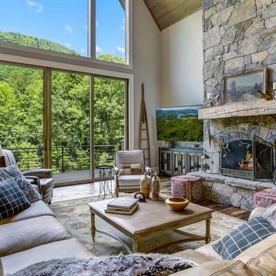 This beautiful contemporary home is conveniently located just 2.3 miles from downtown Highlands, ensuring easy access to the town’s shopping and dining options. The light-filled interior boasts modern furnishings, with a screened porch offering mountain views, ideal for enjoying a relaxing beverage or dining al fresco. With two living areas, this home is perfect for families or couples traveling together. The main level features a bright living room with a vaulted ceiling, stone fireplace, and French doors opening to the screened porch, along with an open-plan kitchen, dining, and living area. The master suite on this level includes a king-sized bed, private ensuite, and a private balcony, ensuring a comfortable and luxurious stay.