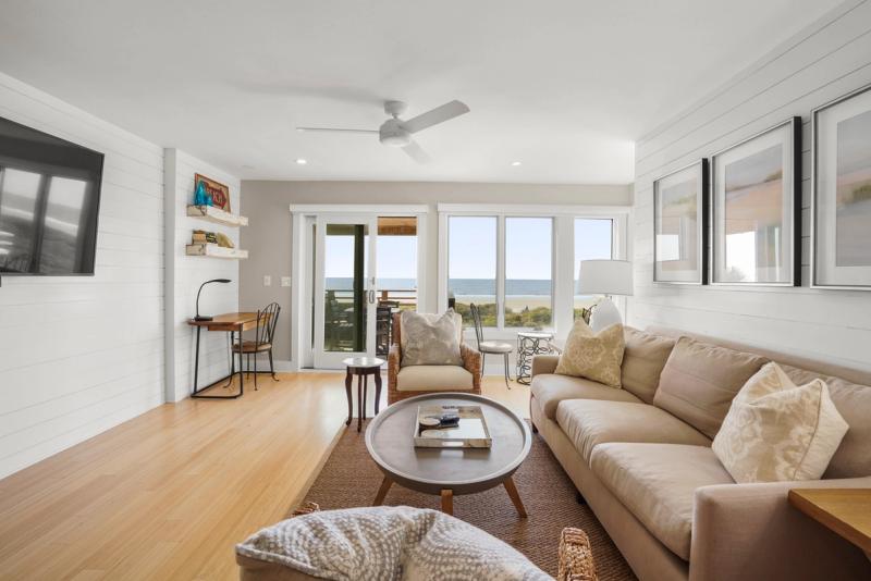 Inside, you’ll feel all your stresses melt away as you take in ocean views through huge windows, sink into comfortable high-end furnishings in a cozy sunroom, and unwind in bright and airy living spaces decorated in calming neutrals and coastal hues. Gourmet kitchens invite culinary exploration with features like Wolf and Thermador appliances, honed quartz countertops, intricately designed backsplashes, and custom cabinetry.