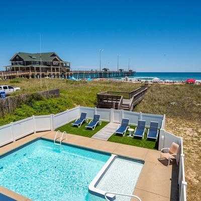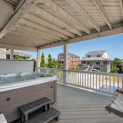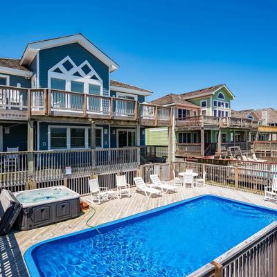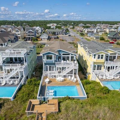 Located at 115 E Dove St in Nags Head, the NH387 Haven on the Banks offers a total of six beautifully designed rental homes ideal for groups looking to enjoy the Outer Banks in style. Each cottage features four spacious bedrooms, perfect for accommodating wedding parties, family gatherings, or any group seeking a beach getaway. Enjoy the semi-oceanfront location just steps away from the Nags Head beaches, providing stunning views and a refreshing ocean breeze. The cottages are well-appointed with modern amenities, including private hot tubs for relaxation after a day of beach activities or exploring the area.