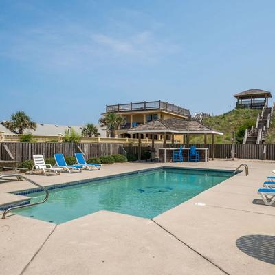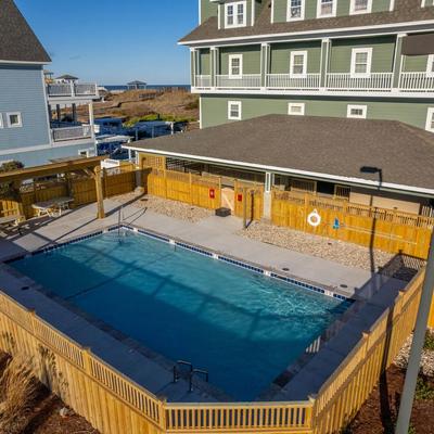 Guests at Haven on the Banks can access the community amenities such as the community pool and the Tiki Bar, perfect for unwinding and mingling with other guests. The property is conveniently situated near outdoor activities in Nags Head, including water sports, fishing, hiking, and attractions like the Wright Brothers National Memorial and Jockey's Ridge State Park. For events, the Keeper's Galley Event Center is just a few steps away from the cottages, offering a versatile space for gatherings big or small. Beach access is a short walk from the property, making it easy to enjoy the sandy shores and coastal scenery during your stay.
