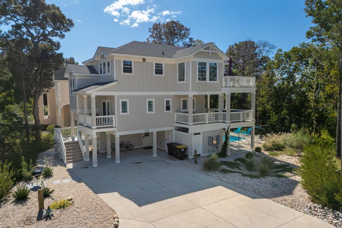 The property boasts a fun-filled rec room with a wet bar, foosball, and direct access to a private backyard oasis featuring a large pool, hot tub, and pier for kayaking and crabbing. Additionally, guests can take advantage of Monteray Shores community amenities such as tennis courts, a fitness center, and a large outdoor pool. With its convenient location just minutes away from beach access, shops, and restaurants, Once Upon A Tide offers everything needed for a perfect Corolla getaway, promising a vacation filled with relaxation, entertainment, and scenic beauty.