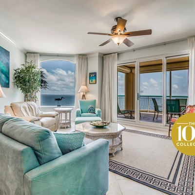 Perdido Realty Vacations showcases the exquisite Beach Colony Tower Penthouse 1A as a premier luxury property sure to captivate even the most particular vacationers. Boasting a grand 16th-floor location, the penthouse exudes spaciousness, lavishness, and comfort from the moment you step inside. Exclusive to the Beach Colony complex set on 11 acres of pristine beachfront, this penthouse features a unique angular living room layout that creates a corner unit feel. Floor-to-ceiling sliding doors and expansive windows envelop the living room with natural light, unveiling breathtaking panoramic views of the Gulf of Mexico. The sizable 300-square-foot terrace offers a perfect setting for both serene moments and lively social gatherings.