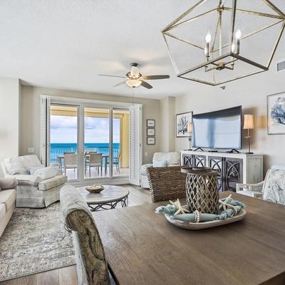 This exclusive Beach Colony vacation rental offers a stunning beachfront experience on 11 acres of prime Gulf coastline. The unique design of the living room with wall-to-wall sliding doors and windows creates a bright and airy space, perfect for enjoying the panoramic views. With a spacious terrace, modern kitchen, and luxurious master bath with Gulf views, this 1497 SF residence provides a comfortable and stylish retreat. The recent remodel adds a fresh touch to the property, making it a welcoming home for your family getaway.