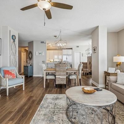 Accommodating up to four guests, the property features a King bed in the main bedroom and two Full beds in the guest room. The fully-equipped kitchen includes a regular coffeemaker and Keurig, while amenities like in-unit laundry and wireless internet enhance your convenience. Enjoy entertainment with multiple TVs and make use of the kitchen gadgets provided, from a Cuisinart food processor to a juicer. For larger groups, the option to book both neighboring condos offers accommodation for up to 14 people, making it ideal for group vacations or family reunions. Experience the best of Beach Colony Resort with this well-appointed vacation rental that combines comfort, luxury, and prime beachfront location.