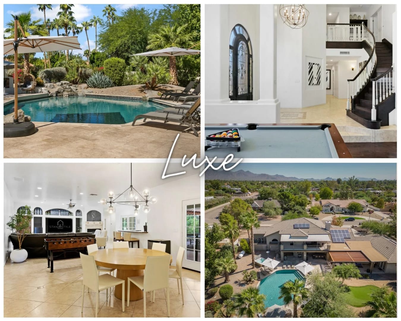This luxurious 7-bedroom, 4.5-bath rental home by Stay With Style Scottsdale offers an ultimate Scottsdale getaway for up to 16 guests. Spanning 5,500 square feet, this pet-friendly retreat features a private heated pool, hot tub, and a games room complete with billiards and arcade classics. Concierge services are available to arrange golf outings, in-home dining experiences, and local adventures. Inside the home, you'll find elegant open-concept spaces with high-end finishes, a gourmet kitchen, cozy fireplaces, and plush bedrooms. The lush outdoor space includes inviting patios for al fresco dining, a dedicated games area, and a large putting green for hours of fun. Conveniently located near Kierland Commons, Scottsdale Quarter, and Westworld, this luxurious escape is just 26 minutes from Phoenix Sky Harbor Airport, offering convenience, comfort, and excitement for your memorable Scottsdale adventure.