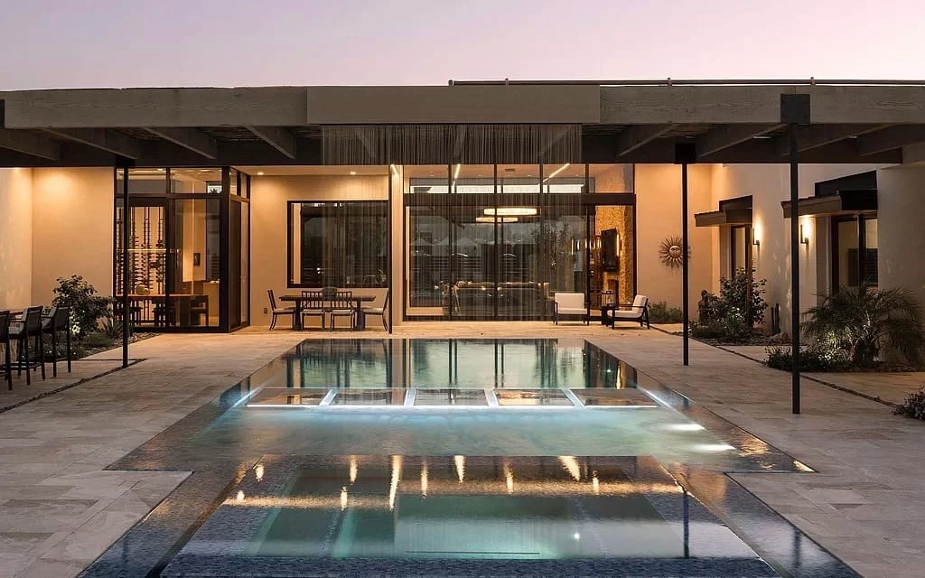 The Paradise Reserve in Scottsdale is a luxurious retreat ideal for corporate and wellness retreats. This stunning estate provides a perfect blend of relaxation, rejuvenation, and creating lasting memories for up to 12 guests. With 6 bedrooms, 5.5 bathrooms, and 5,550 square feet of living space, the property offers exclusive amenities such as a pool, hot tub, putting green, and sport court for basketball and pickleball. The interior boasts a chic design with a great room, a kitchen equipped with high-end appliances, a formal dining room, and comfortable bedrooms featuring high-quality mattresses and amenities. The outdoor oasis includes a BBQ area, fireplaces, covered patio, and a large pool with overhead waterfall, creating a perfect space for both leisure and fitness activities.