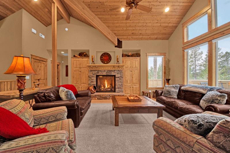 Free-flowing open floor plans, spacious rooms, vaulted wood-clad ceilings, and large pane windows create a sense of space that welcomes guests to spread out and enjoy these custom luxury homes. At the same time, enormous kitchens with details like custom wood cabinetry, six-burner ranges, wine fridges, double ovens, and subzero refrigerators invite you to gather.