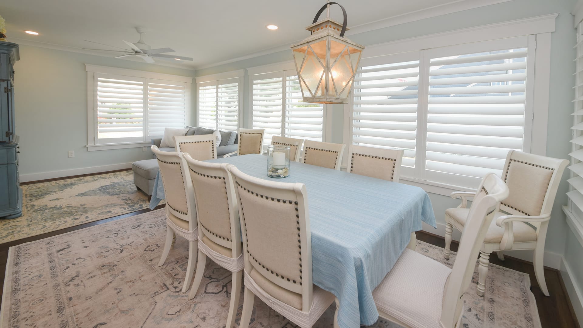 "Absolutely amazing" is the best way to describe the enchanting "Moon Glow" vacation rental. This single-level home boasts an array of fantastic features, including a landscaped in-ground swimming pool, screened porch/sunroom, and direct access to an open beach just across the street. The spacious living room is ideal for relaxation, with a 60” TV, electric fireplace, and comfortable sectional seating. The kitchen area is well-equipped with sleek black stainless steel appliances, an island with seating, and a wine cooler for chilling beverages.